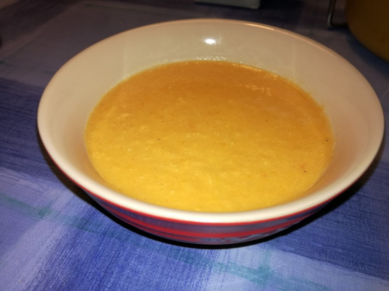 Suppen afkøles en anelse - den pureres og varmes op igen.