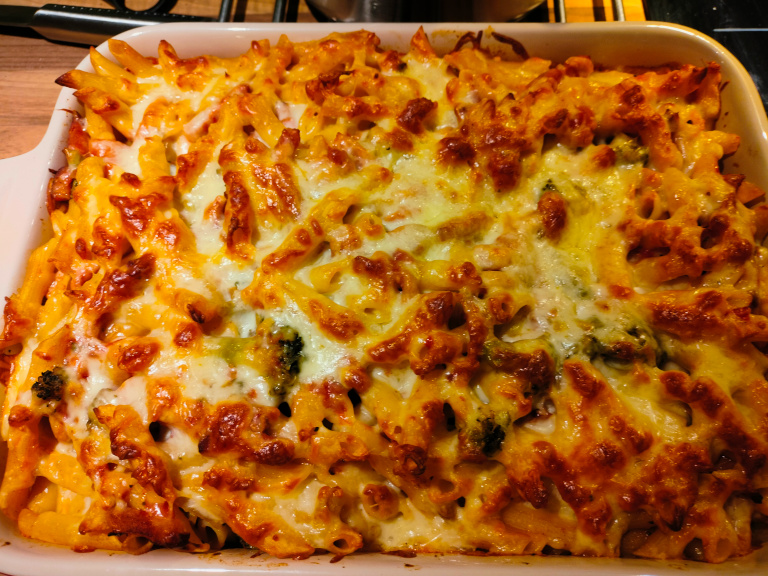Stilles i forvarmet ovn ved 200° indtil osten er gylden.