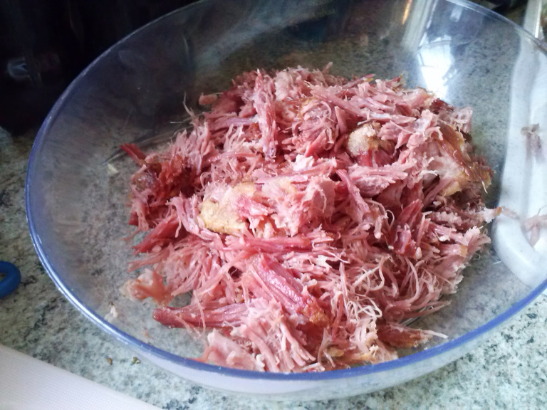 Kødet kan nu trækkes fra hinanden med 2 gafler - i trævler.