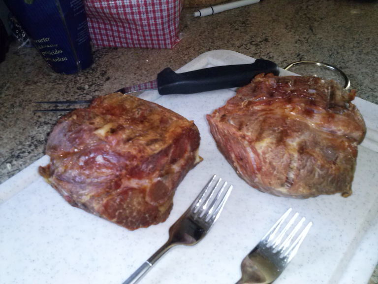 Stil i ovn ved 100° i 10 timer - til at skaftet på en spiseske kan prikkes igennem stegen, som var den af smør.