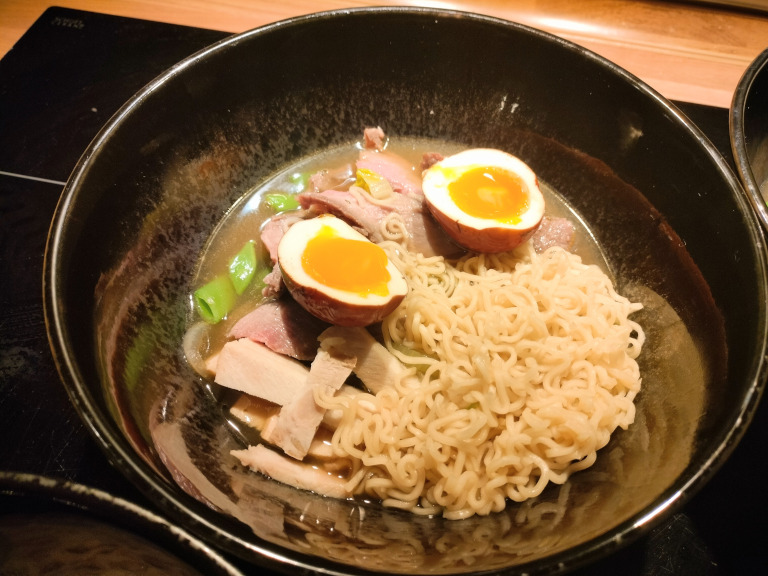 Ægget pilles forsigtigt og lægges marinaden i 4-5 timer, hvorefter det er klar til f.eks. ramen eller lignende.