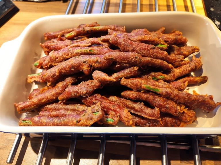 75 g grønne bønner - helst ikke fra frost, da dejen så ikke sidder så godt fast.