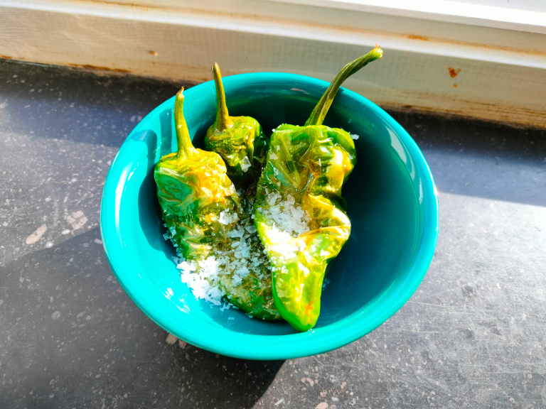 Spansk snack eller tilbehør lavet af milde grønne chilier - padron.