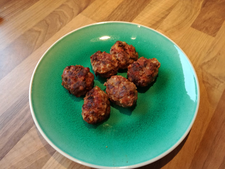 Farsen formes til frikadeller, der steges på en stegepande i olivenolien, evt. med en lille klat smør.