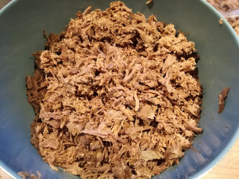 Kødet kan bruges som fyld i f.eks. pitabrød eller i en burger ? smager dejligt med salat og hjemmelavet BBQ-dressing.