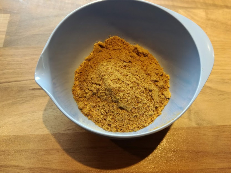 Alle ingredienser der ikke allerede er i pulverform sendes en tur i en kværn. Derefter blandes alle ingredienserne godt sammen.