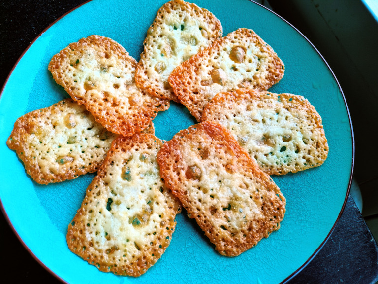 9-12 skiver cheddarost - størrelse på skiverne afgør hvor mange der bliver på en bageplade, da de ikke må røre hinanden