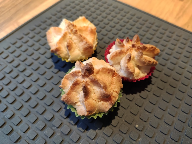 Massen fordeles i formene og bages i 15-20 min. ved 200 - værd at notere sig, at de bliver så gyldne på de første 5 min., at resten af bagetiden skal de være tildækket.