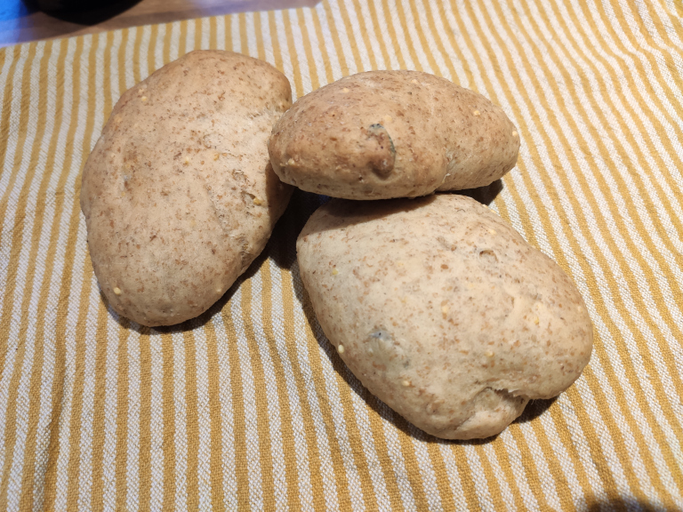 Dejen slåes ned, formes til boller der efterhæver i 20-30 min.