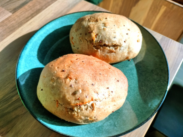 Hvis man trykker bollerne flade, passer de nemmere ned i en madkasse til frokost i skole og lignende.