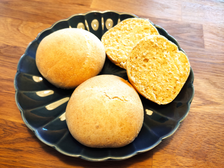 Man kan evt. pensle bollerne med et sammenpisket æg, mælk eller af blanding af begge.