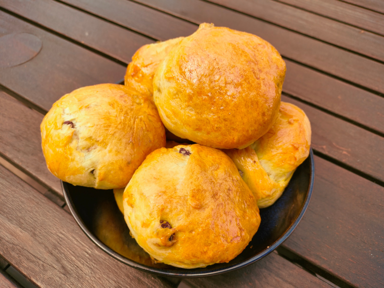 Dejen slåes ned, formes til 10-12 boller, der efterhæver i 15 min.