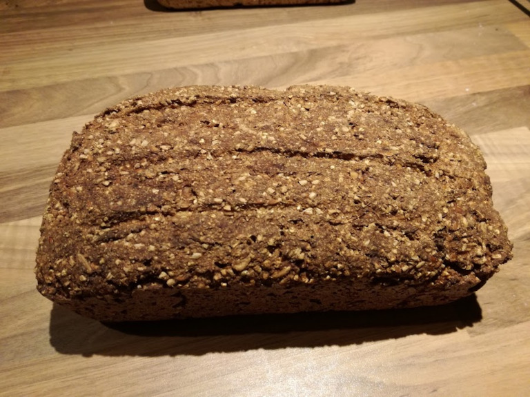 Anbefaling: lad brødet køle af natten over, før man skærer i det - det kan ellers blive klægt.