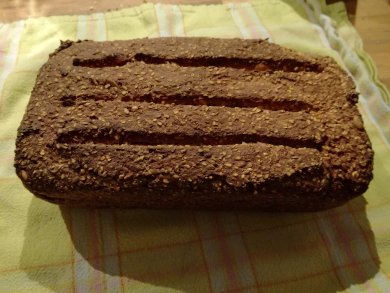 Anbefaling: lad brødet køle af natten over, før man skærer i det - det kan ellers blive klægt.