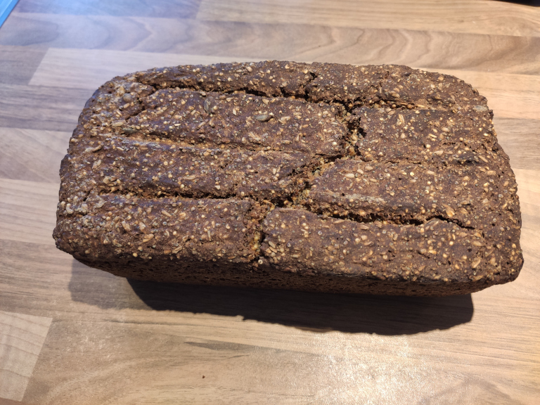 Anbefaling: lad brødet køle af natten over, før man skærer i det - det kan ellers blive klægt.