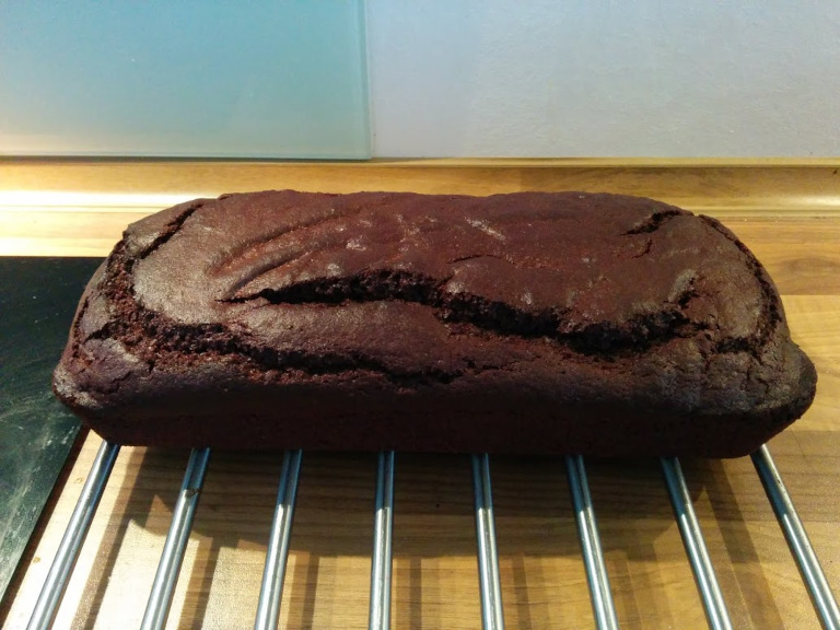 Hæld dejen i en smurt form, og bag i forvarmet ovn ved 170° i 40 min.