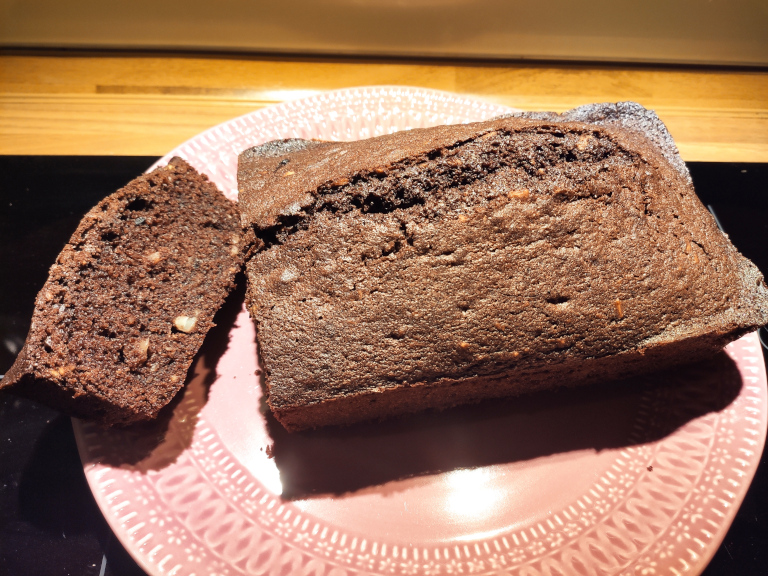 Kagen hældes i en velsmurt lille brødform, stilles i kold ovn og bages i 1 time ved 165°.
