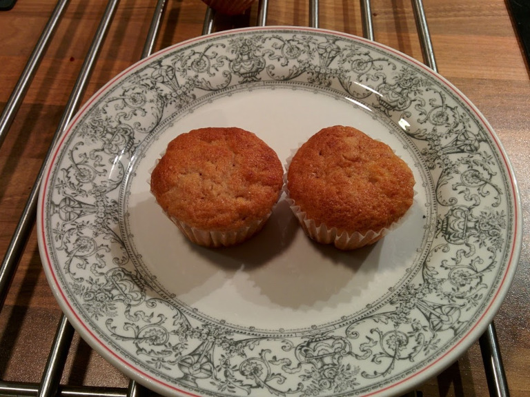 Resten af ingredienserne tilsættes. Dejen røres godt sammen og dejen fordeles i muffinforme.