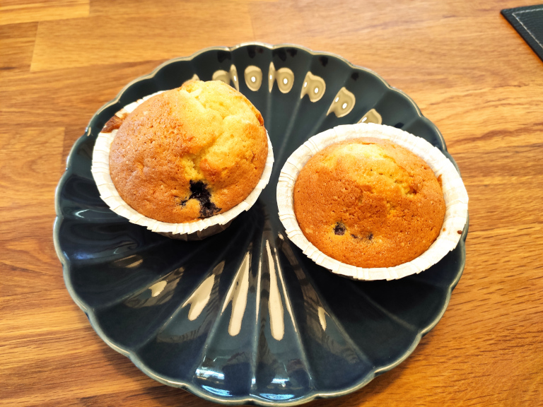 Dejen fordeles i muffinforme og bages ved 180° i 20-25 min.