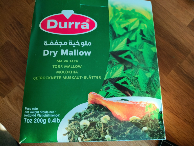Tørrede Mallow blade eller Molokhia blade, bliver også kaldet for egyptisk spinat.