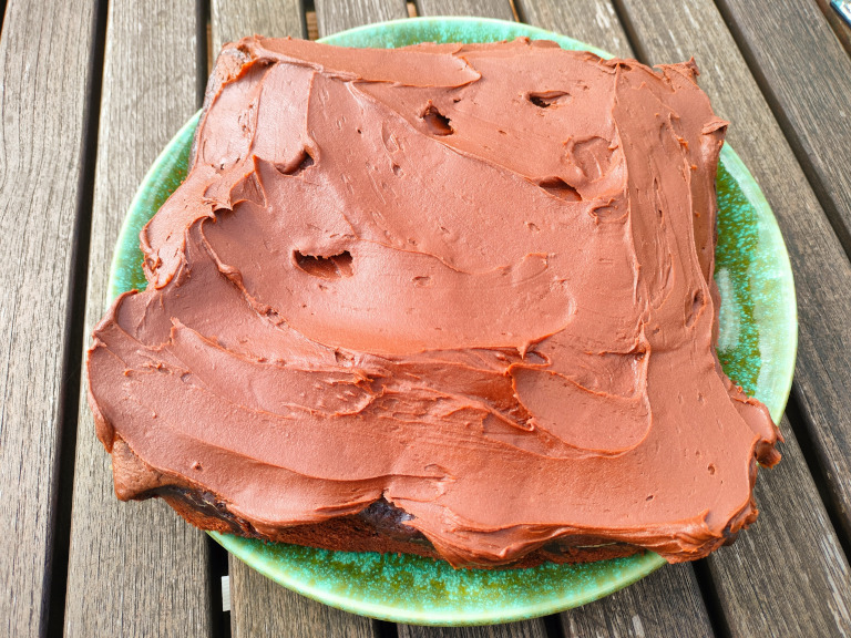 Påføres kagen, f.eks. med sprøjtepose+tylle eller forsigtigt med en smørekniv.