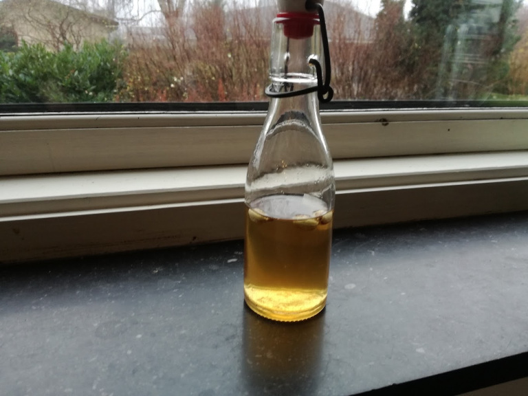 Sukkeret hældes i og væsken varmes op indtil sukkeret er opløst.