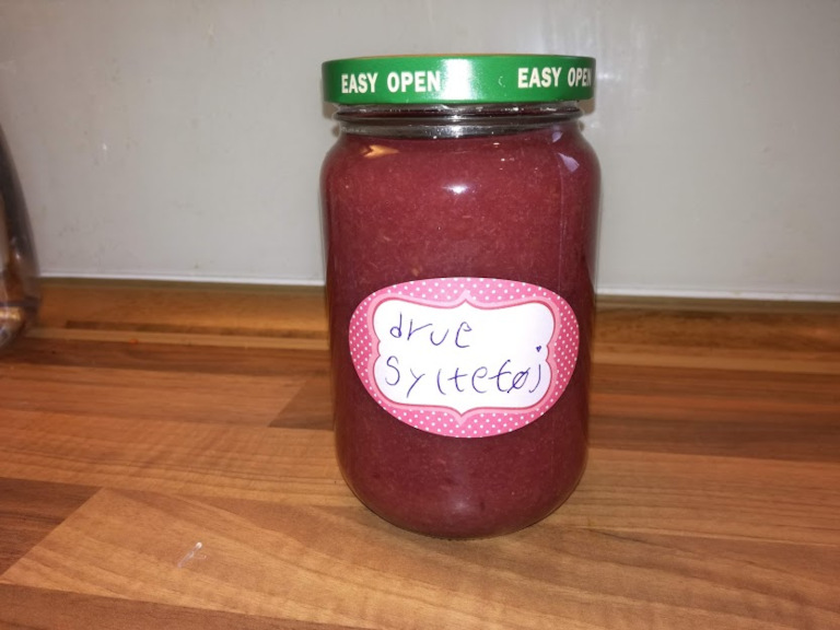Vindruer og vand koger indtil druerne er godt bløde, hvorefter man blender massen.