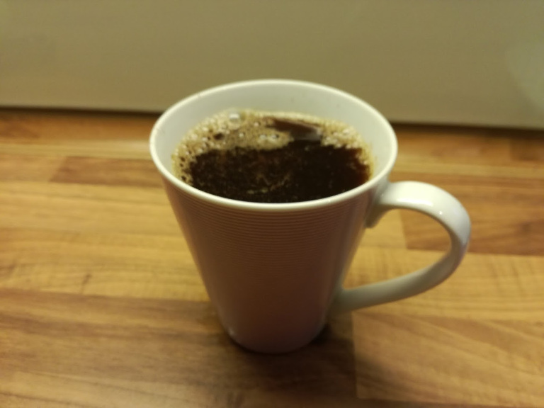 Kaffemaskine: Kaffe og kanel hældes sammen i filteret, hæld vand på maskinen og lad den arbejde.