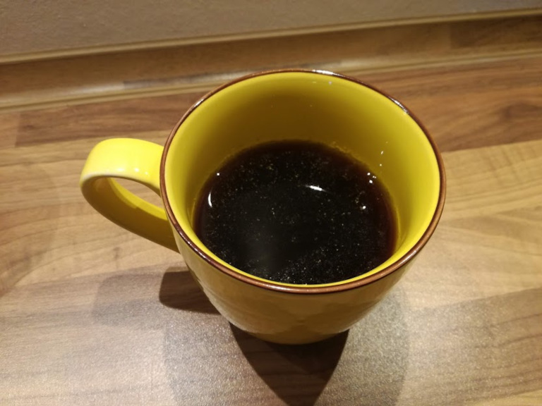 Kardemomme, kaffe, rørsukker og vand bringes i kog og simrer i 15-20 min.