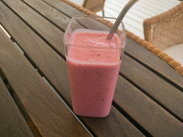2 prs.2 isterninger (ca. 2 spsk.)1½-2 dl blandede skovbær (gerne fra frost)½ liter yoghurt naturel2 spsk. sukkerAlle ingredienserne blendes godt sammen og serveres med det samme.