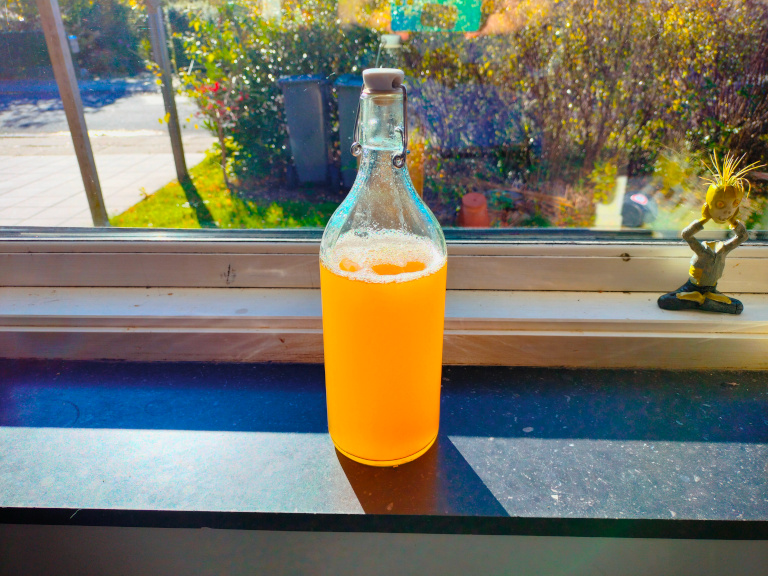 Saften hældes, mens varm, på atamonskyllede flasker.