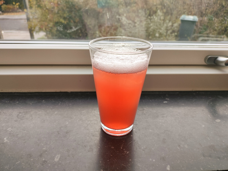 Saften hældes, mens varmt, på atamonskyllede flasker.