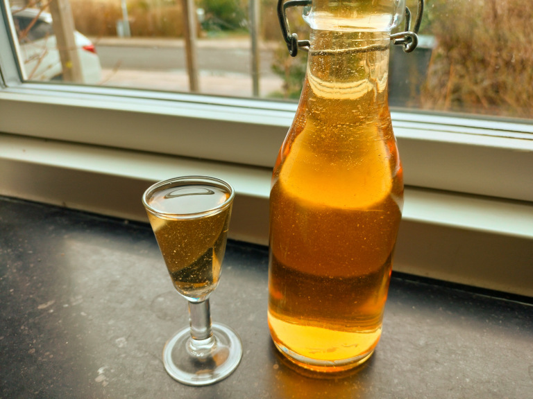 Lad trække i 6 måneder, hvorefter snapsen drænes og hældes på flaske.
