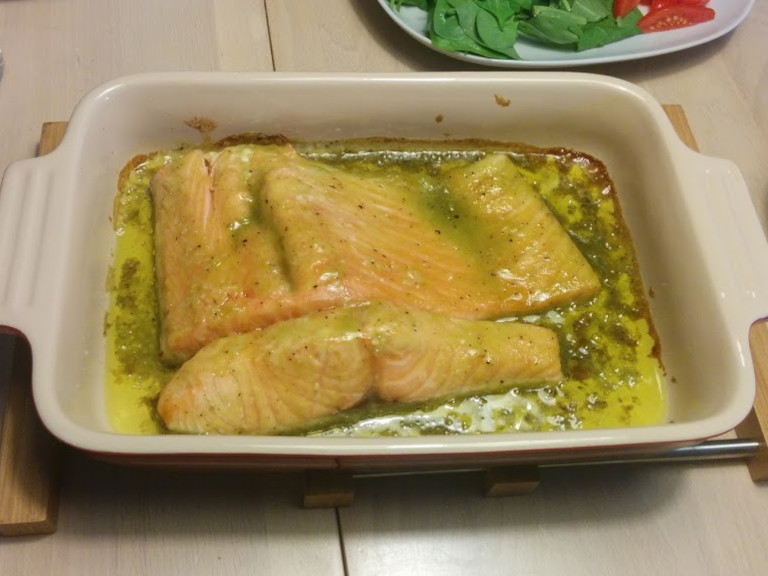 Stilles - stadig tildækket i opvarmet ovn (200°) og tilbered í 10 minutter. Herefter fjernes tildækningen og fisken steger videre i minimum 5 minutter. Måske mere - hold godt øje, så fisken ikke får for meget og bliver tør.