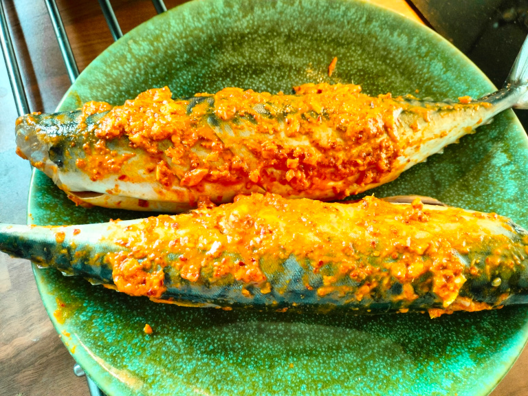 Snit 3 riller i hver side af makrellerne og gnid marinaden godt ned i rillerne.