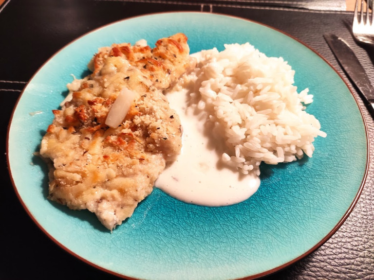 Rasp, basilikum og ost blandes godt sammen og drysses oven på fisken.