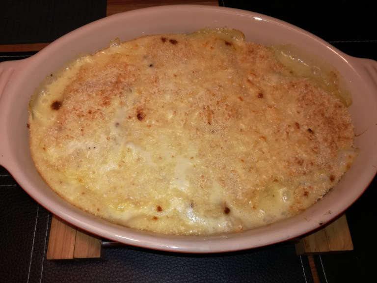 Retten gratineres i ovn ved 185° i ca. 20 min.