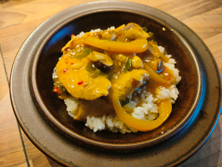 Bouillon og limesaft hældes i wokken, og saucen koger i 3-4 min.