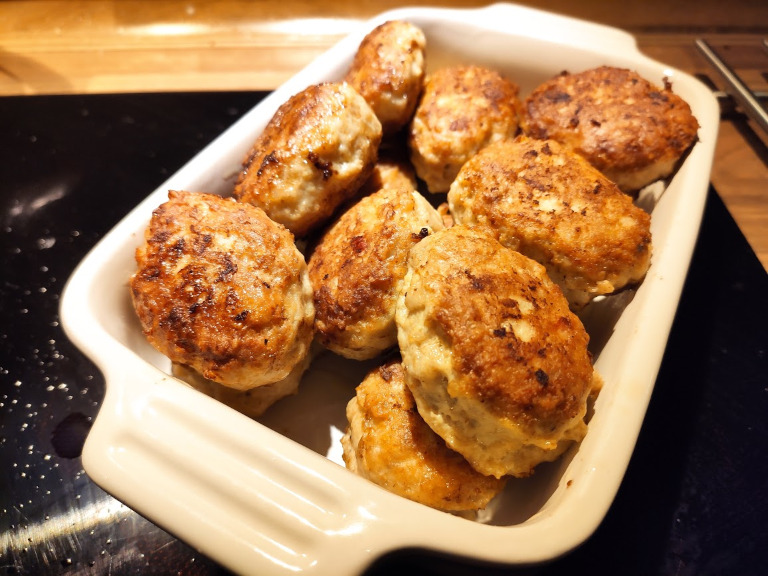 Form farsen til små frikadeller og steg dem på en stegepande.