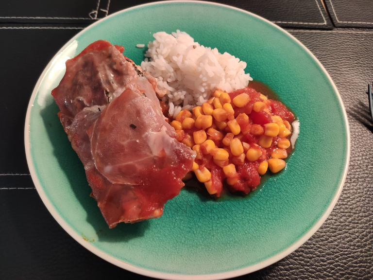 Kødet lægges oven på tomatsaucen, låget lægges på fadet og retten stilles i ovn ved 180° i ca. 1 time.