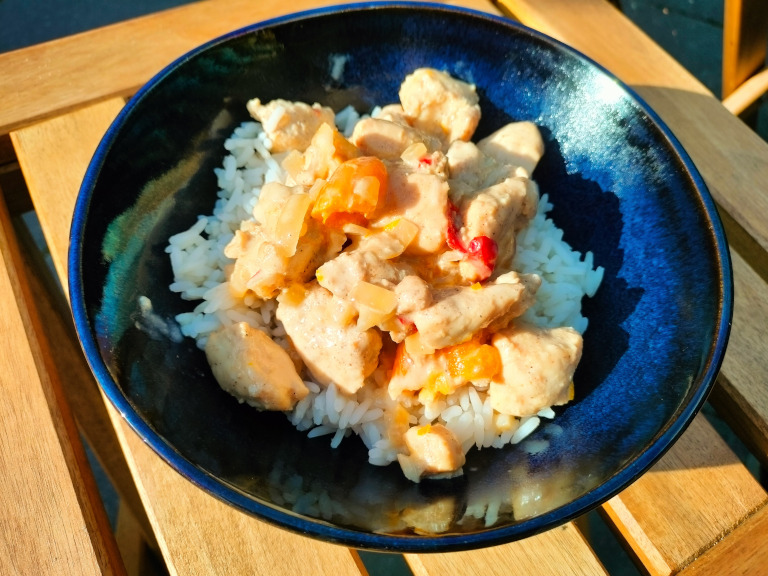 Sesamolien varmes op i gryden/panden og kyllingekødet svitses god heri.