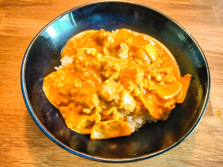 Server med kogte ris og evt. naanbrød.
