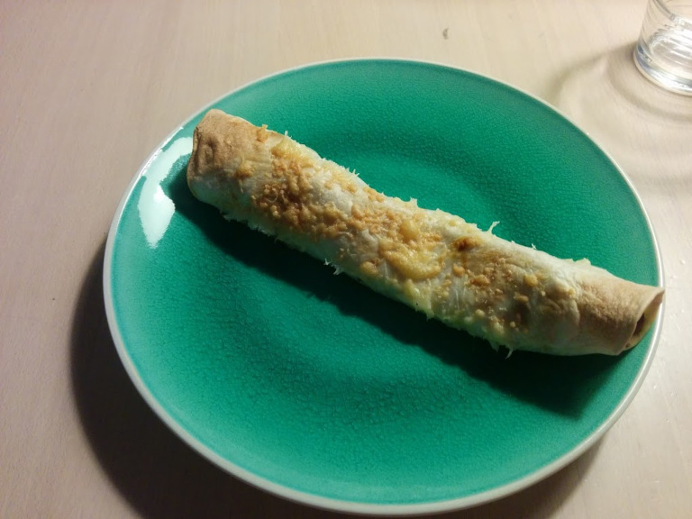 Kødet fordeles på pandekagerne sammen med halvdelen af osten. Pandekagerne rulles sammen og lægges - ovenpå samlingen - i et smurt ildfast fad. Resten af osten drysses over pandekagerne, der gratineres i ovn ved 200° i ca. 10 min.