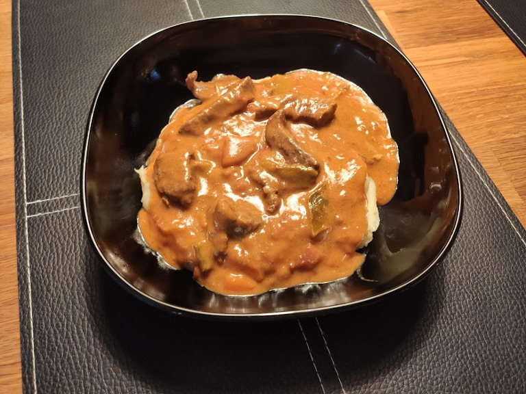 Serveres evt. med kogte ris eller kartoffelmos.