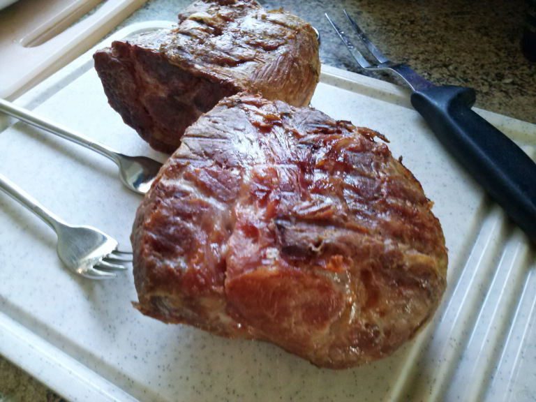 Stil i ovn ved 100° i 10 timer - til at skaftet på en spiseske kan prikkes igennem stegen, som var den af smør.