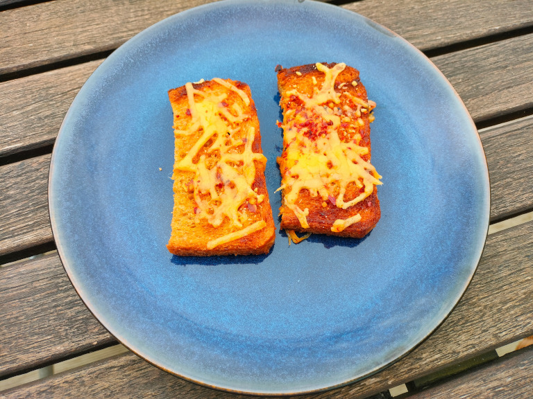 Placer brødene i et ildfast fad, drys osten og chili over og lad gratinere i ovnen, ved ca. 180°, indtil osten er smeltet.