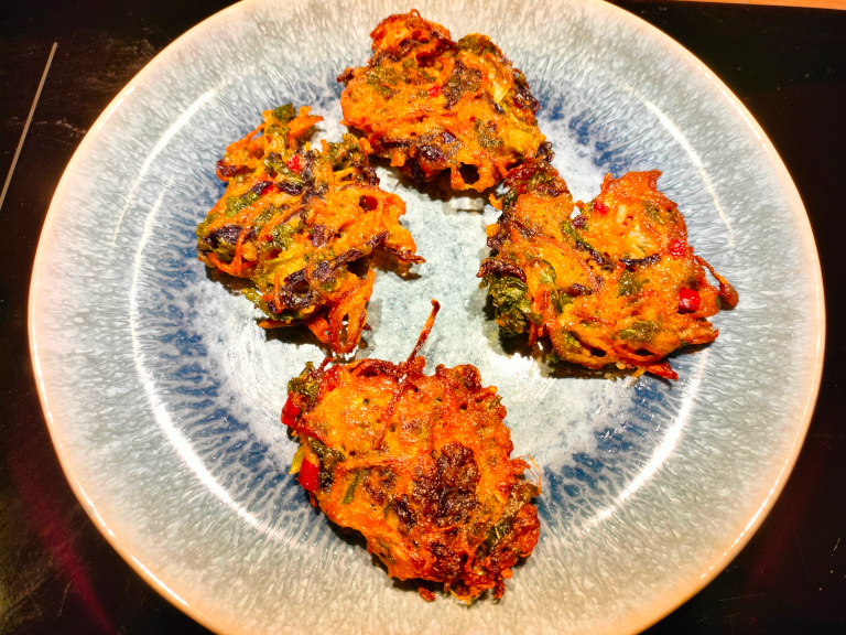 Olien varmes op i en stegepande. Tag en spiseskefuld af dejen og placer den i olien, fortsæt indtil panden er fuld - sørg for at de ikke rører hinanden, da de så vil klistre sammen. Vendes når de er gyldne og sprøde og steges på den anden side.