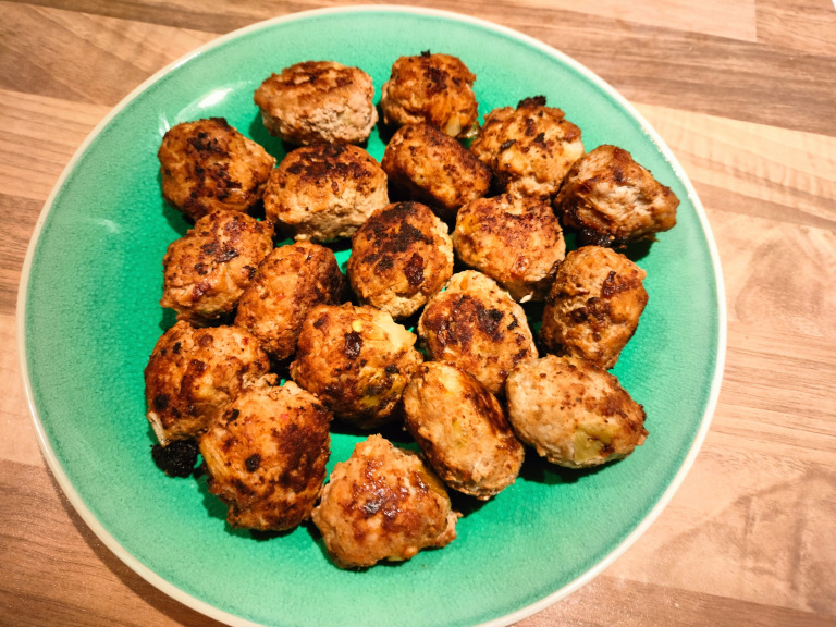Farsen formes til frikadeller, der steges på en stegepande i fedtstoffet.
