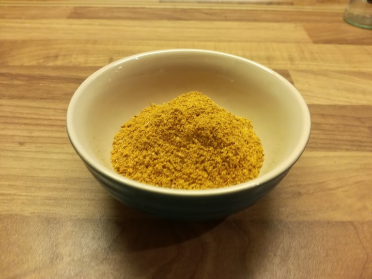 Alle ingredienserne blandes godt sammen, og hvis nogle af ingredienserne ikke er i pulverform, skal blandingen en tur i en kværn.