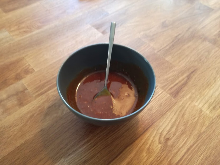 Alle ingredienserne røres sammen, og så er saucen klar.
